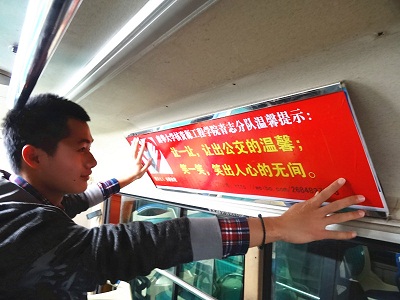 2013年3月10日,核资源工程学院青年志愿者分队为深入学习贯彻落实党的十八大精神,弘扬雷锋精神、倡导市民主动让座,在衡阳市区公交线路上开展了“雷锋三月,意暖公交”的主题活动。