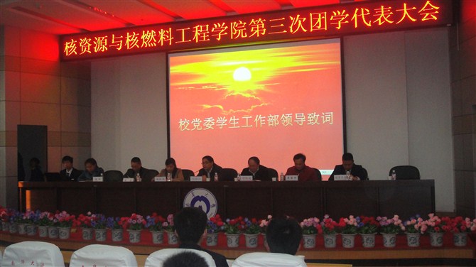 2011年11月13日上午,核资源与核燃料工程学院在图书馆学术报告厅隆重举行第三次团学代表大会。学校学生工作部部长刘镇江,团委副书记谢铷鸿,核资源与核燃料工程学院院长谭凯旋,副书记李望平,辅导员郑宇、杨婷、屈慧琼、李春光等领导和老师出席了此次大会,校学生会主席吕长鑫,各学院学生会主席受邀列席了会议, 核资源与核燃料工程学院第三次团学代表大会代表共230人参加了大会。大会由学院团委书记杨婷主持。