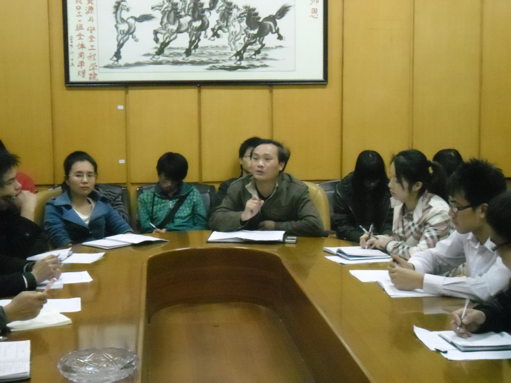 核资源与核燃料工程学院第三届团学会第一次例会于2011年11月21日晚在院会议室召开。学院党委副书记李望平、分团委书记杨婷、辅导员李春光老师出席此次会议,主席团及各部门正副部长共57名团学干部参加会议,会议由杨婷老师主持。
