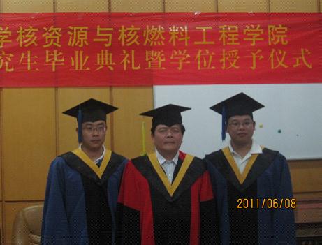 在庄严的国歌声中,2011届研究生毕业典礼暨学位授予仪式正式开始。校研究生处刘永副处长宣读了学校学位评定委员会关于学位授予的决定。决定指出,经学校学位评定委员会决定,分别授予曾晟1名同学博士学位,授予公新忠等11名同学硕士学位。谭凯旋院长向全体毕业研究生表示了祝贺并鼓励他们在科研的道路上继续探索,祝福研究生们今后事业辉煌、前程似锦。随后毕业研究生赵玉容发言,回顾了在母校求学期间的点点滴滴,代表全体毕业生对老师们的辛勤培养和教育表示衷心的感谢,立志将继续传承“勤勉务实,甘于奉献,刚健自强,敢为人先”的南华精神。丁校长做了重要讲话,代表学校向顺利完成学业的博士和硕士表示热烈的祝贺,向教学的老师们表示衷心的感谢,并对全体研究生提出了两点殷切的希望:第一,以犹太人在诺贝尔奖方面取得的辉煌成就为例,希望同学们能多读书,读好书;第二,希望同学们能时刻牢记“三首歌”,即“中华人民共和国国歌”、“国际歌”和西游记的主题曲“敢问路在何方”,要求同学们时刻具有危机意识、奋斗意识,要踏踏实实做人、扎扎实实做事。苏玲书记在总结丁校长讲话的基础上,对毕业研究生赠予了美好的祝福。