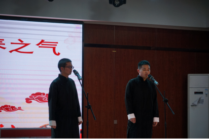 在颁奖结束后,晚会继续进行。面对社会思潮的交流交融交锋,身为大学生的我们难免会有困惑,会有迷茫,但有一条主线始终不变,就是对党和国家的赤诚热爱。相声《谁的大学不迷茫》为同学们带来了新的思考,帮助同学们找到目标。