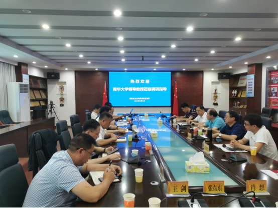 2023年6月6日,南华大学英国威廉希尔唯一官网副院长王清良、稀有金属矿产开发与废物地质处置技术湖南省重点实验室主任唐振平、南华大学土木工程学院教授熊正为、资源勘查工程系主任段先哲及副主任韩世礼一行到湖南省生态地质调查监测所调研交流。所长于辉胜主持召开座谈会,副所长罗忠行、副所长曾蔚及相关部门负责人参与调研交流活动。