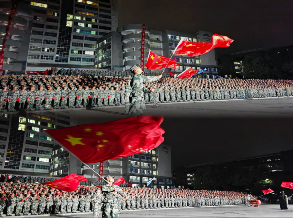泱泱中华,山河万里;星河璀璨,盛世平安。我爱你中国,亲爱的母亲,我为你流泪,也为你自豪。我院新生以饱满的热情、嘹亮的歌声演绎了《南华大学校歌》和《我爱你中国》两首歌曲。将这份对祖国的无限深情抒发得淋漓尽致,严整的军容,干净利落的动作,响彻校园的歌声,国旗与院旗在风中猎猎飘扬,给现场观众带来了一场视听盛宴,展现了资环安学子的精神风貌。