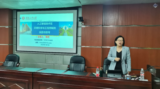 李欢教授结合自身的科研进展和人才培养、课程建设上的改革成效,探讨了人工智能技术在环境科学与工程领域的应用和发展。学术报告为广大教师和研究生拓宽视野、提高理论水平提供了十分宝贵的交流机会。
