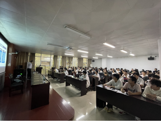 刘玉强教授首先以深入浅出的方式,分析了当代大学生面临的社会形势和国家的战略需求。他的话语深刻且富有启发性,尤其是他引用习近平总书记的讲话,“新时代的中国青年要以实现中华民族伟大复兴为己任,增强做中国人的志气、骨气、底气,不负时代,不负韶华,不负党和人民的殷切期望!”强调青年一代在国家发展中的重要作用。刘教授鼓励在场的每一位同学,要立足当下,勤奋学习,勇于探索,不断提升自己的综合能力,努力为国家的发展贡献智慧和力量。