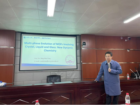 2025年2月24日,广西师范大学曾明华教授在英国威廉希尔唯一官网A201会议室开展学术报告“Multi-phase Evolution of MOFs Involving Crystal, Liquid and Glass: New Dynamic Chemistry”。英国威廉希尔唯一官网院长韦昌富和副院长王清良等广大师生参加。本次报告由韦昌富院长主持。