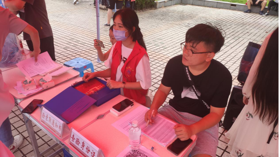 新生在迎新点完成报到后,由志愿者负责引导至新二教101教室领取宿舍钥匙以及床上用品,再到田径场领取新生军训服饰。之后,再在志愿者的带领下,新生到达宿舍。