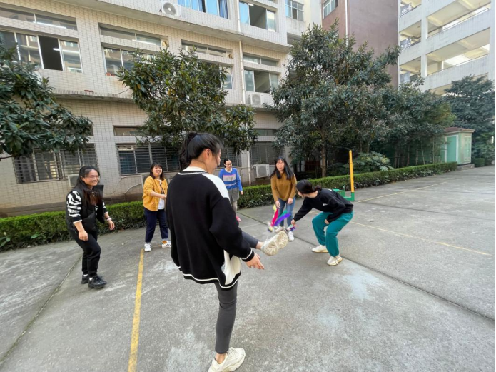 随后对全院39名女职工进行了分组,共分成四个参赛队伍。女工委员王逸韵对三轮比赛的参赛规则进行了介绍,比赛为团体赛,共设置为三轮项目,分别是“踢毽子接力赛”活动、“踢毽打靶”活动、“圆圈盘踢”活动。赛场上,翻飞的毽子,如燕儿般轻盈的身姿,大家各显身手,现场笑声不断。