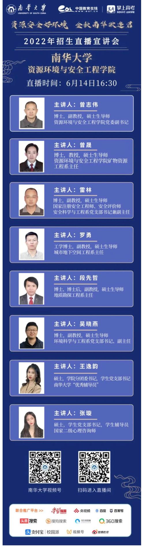 本专业为南华大学传统优势专业和湖南省一流本科专业,其前身是1959年成立的隶属于原核工业部的衡阳矿冶工程学院(南华大学前身)放射性地质与勘探专业。具有地质资源与地质工程一级学科硕士学位授权点和资源与环境专业硕士学位授权点,2018年通过教育部中国工程教育专业认证,2021获批湖南省地质学拔尖人才培养基地。依托矿业工程一级学科博士学位授权点和博士后科研流动站招收和培养博士研究生和博士后。目前拥有专任教师65人,其中正高24人、副高16人,具有博士学位49人,入选中组部“国家级人才项目入选者”1人,享受国务院政府特殊津贴2人,教育部工程教育认证专家1人,教育部高校地质类专业教指委1人,湖南省新世纪121人才工程3人,湖湘青年英才2人,省级青年骨干教师7人。拥有核能与核技术工程虚拟仿真实验教学中心、核燃料循环技术与装备协同创新中心等8个国家级教学科研平台,湖南省地质矿产勘查与地灾防治创新创业教育基地、稀有金属矿产开发与废物地质处置技术湖南省重点实验室等7个省部级教学科研平台。建设湖南省一流课程2门,获省级教学成果二等奖和三等奖各1项,获国防科学进步特等奖1项、湖南省自然科学奖二等奖和三等奖各1项。专业旨在培养能在企业、科研院所等部门从事铀及其它金属和非金属矿产、能源矿产等资源勘查评价、开发管理、科学研究工作或从事工程地质勘察、地质灾害防治的规划、设计、研究、施工和生产管理等工作的高素质人才。本科生就业率96%以上,考研率30%以上。