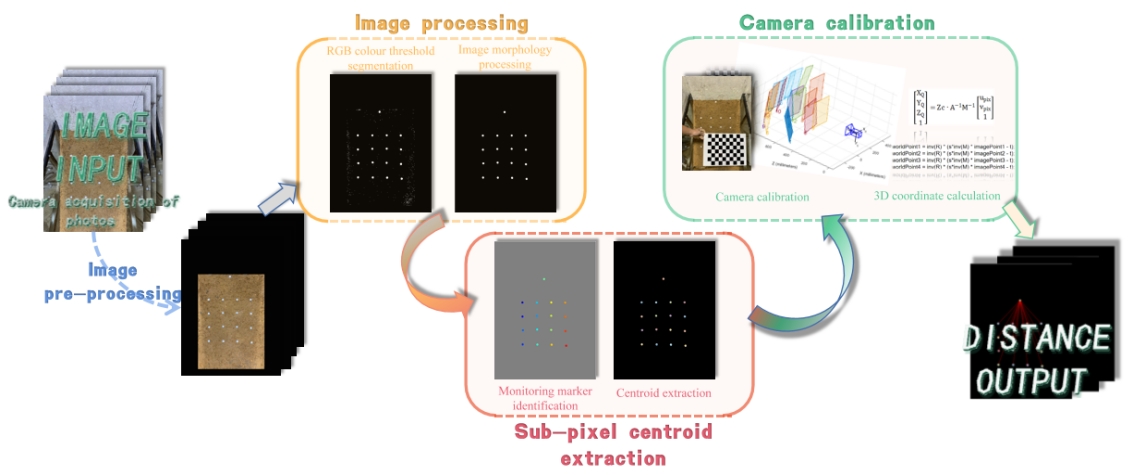 滑坡的变形和位移一直是滑坡监测和预警的重点。近年来,通过图像数据分析滑坡表面变形成为一种热门方法,随着图像处理技术的发展,不同的图像分析方法迅速增加,但目前单一使用图像处理的方法分析滑坡变形位移倾向于滑坡局部变形区域的位移分析,缺乏滑坡表面整体监测且难以用于滑坡灾害成灾前监测,易导致滑坡隐患点漏查。
