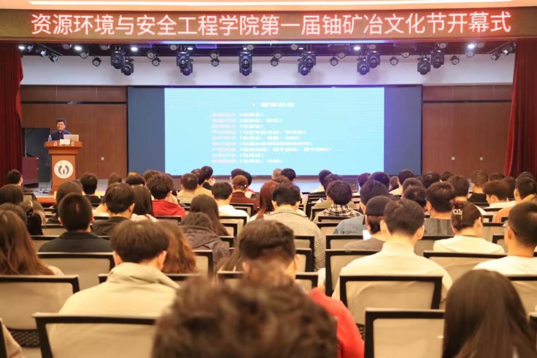 副院长贺桂成详细介绍了铀矿冶文化节的主要活动。团委副书记彭家俊同学宣读践行“四个一切”核工业精神和新时代核工业精神的倡议书。