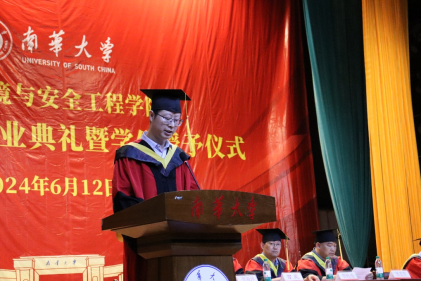 首先是学生代表发言。毕业研究生代表付敏博士表示,步入南华大学从充满期望到历经苦乐,再到收获和成长,得到的不仅是知识、技能、经验,更是“勤勉务实、甘于奉献、刚健自强、敢为人先”的南华精神的传承。本科毕业生代表葛沛豪回忆了大学时光无论是成功还是挫折,快乐还是悲伤,这些经历都是我们成长路上的宝贵财富,它给予我们信心和勇气去战胜眼前的困难,去迎接未来的挑战。李佳燕代表在校生发言,她祝愿学长学姐们以青春奋进的姿态唱响人生之歌,以梦想不老的激情书写资环安青年“正青春”的时代华章!