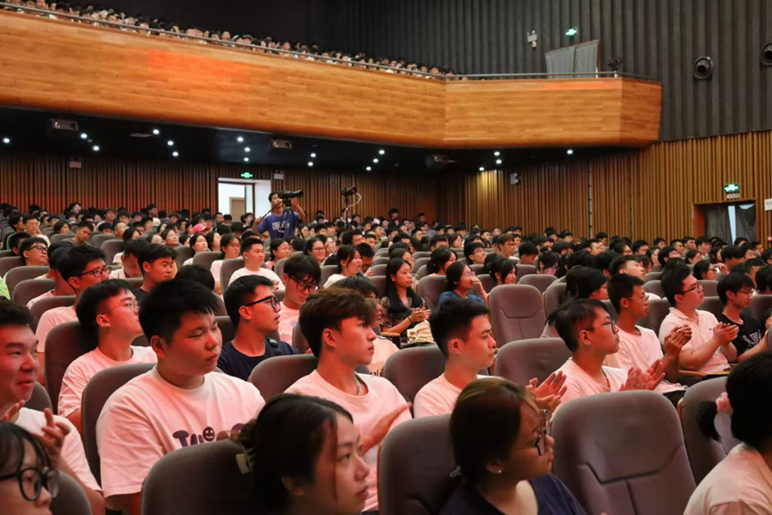 院长张志军老师作总结发言,他代表学院向2024级全体新生的到来表示欢迎和祝贺,详细介绍了学院历史沿革和人才培养成果,勉励新生们勤学苦练、勇于创新、健康管理、诚信向上。