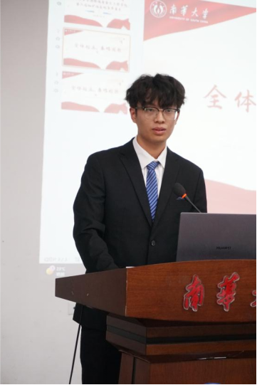 主题报告结束之后,谢佳豪同学宣读了践行地质“三光荣”精神、践行地质“四特别”精神、核工业精神、新时代核工业精神倡议书