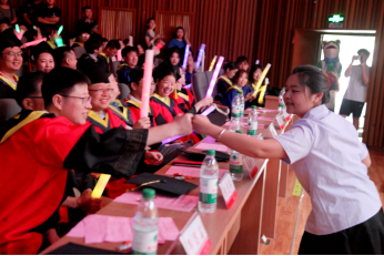 值得一提的是,歌会的歌单来自前期学院公众号的公开征集,现场熟悉的旋律多次引发全场大合唱,成为毕业生们最动人的告别仪式。歌会中还设置了游戏环节,为毕业生派发了具有学校特色的定制文创。
