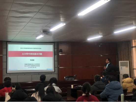 20231220日,我院举办2024年国家自然科学基金项目申报启动会暨中国科学院武汉岩土力学研究所韦昌富教授学术讲座。韦昌富教授作了题为“土力学中某些基本问题”和“国家自然科学基金项目申请中的一些关键问题”的学术报告,报告由院长张志军教授主持,相关专业教师、研究生、本科生100余人聆听了本次报告。