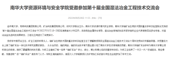 学科邀请国家重金属污染防治工程技术研究中心主任,国家杰青获得者林璋教授,中南大学教授、长江学者唐崇俭教授,国家优青获得者田晨副教授,中南大学资源加工与生物工程学院副院长高志勇副教授,国防科技大学系统工程学院、国家杰青、优青获得者延庆云教授、中国铀业有限公司苏学斌总工程师等20多位学者、专家和行业领袖进行线上或来校进行学术交流,并聘请林璋教授为南华大学客座教授。