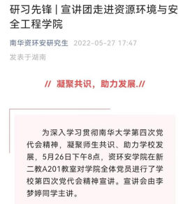 (4)厚植家国情怀,传承南华精神,深入推进文化育人。将核工业、铀矿冶精神融入教育教学各环节,定期举办先进事迹报告会,大力创作爱国主义题材的校园文化作品,引领师生在爱国报国文化的浸润中厚植家国情怀,勇担时代责任;依托校史馆、图书馆等,持续开展南华精神教育,加大对优秀校友、优秀科研工作者的宣传,以鲜活案例诠释南华精神,尤其是以学科带头人丁德馨教授的典型模范为学习对象,引导广大师生勤勉务实、甘于奉献。