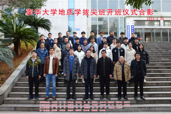 仪式由蒲成志副院长主持。刘泽华部长首先致辞,他对南华大学地拔班的开班表示热烈祝贺,并对地拔班同学提出殷切希望。地拔班作为南华现有三个湖南省拔尖班之一,将在“三制三化”框架下,努力打造核心课程体系,加强教学教育改革和创新,建设具南华特色的地质学人才基地,培育适应未来地学发展需求的创新型拔尖人才。他衷心祝愿地拔班的同学们学业有成,早日成才。随后,张志军院长致辞,他首先代表资源环境与安全工程学院祝贺地拔班开班。他指出,开办地拔班是响应教育部“六卓越一拔尖”的要求,希望同学们能够夯实理论基础、树立创新意识、培养高尚情操和家国情怀,努力成长成才,学院也将在师资力量、国际化等方面大力支持地拔班建设,培养品德优良、基础厚重、专业精深、特色鲜明的地学人才,希望同学们奋发向上,为自己的人生划上浓墨重彩的一笔,愿青春无悔,不负韶华。接着,谭凯旋教授致辞,他指出,地质学是十分重要的基础科学,对深入理解并打造宜居地球十分关键。进入地拔班意味着在学习过程中将付出更多的汗水,号召同学们向老一辈地质学家学习,立志为国家地矿行业和地学发展作贡献,成长为又红又专的地学人才,希望同学们加强与导师的联系,积极参与科研活动,并预祝同学们取得丰硕成果。姜泰同学作为首届地拔班学生代表进行发言,他表示,进入地拔班将会迎来更多的机遇和挑战,承诺将树立远大目标,勤勉务实,努力提升自己,成长为德才兼备的地学人才,并为地拔班的发展壮大贡献自己的力量。随后进行授牌仪式,刘泽华部长为地拔班授牌。最后,与会教师和地拔班的同学在资源环境与安全工程学院大门前合影留念。