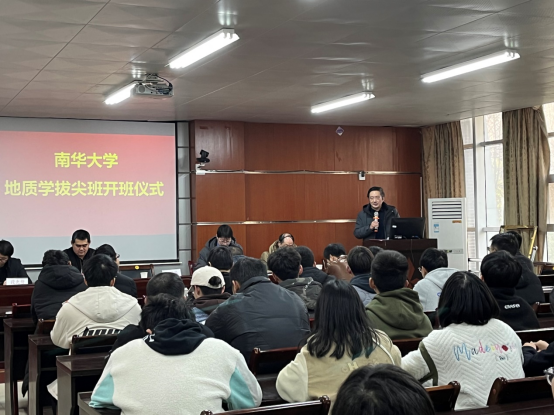 2022年2月25日,南华大学地质学拔尖班(简称地拔班)开班仪式在南华大学新二教201会议室顺利举行。我校教务部刘泽华部长,资源环境与安全工程学院张志军院长、蒲成志副院长,地质资源与地质工程学科带头人谭凯旋教授,学工室陈彦武主任,地质勘探工程系主任段先哲副教授、系党支部书记陈亮副教授、系副主任韩世礼博士以及地质勘探工程系其他教师出席了开班仪式。